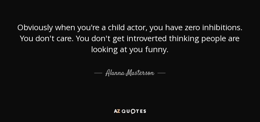 Obviously when you're a child actor, you have zero inhibitions. You don't care. You don't get introverted thinking people are looking at you funny.