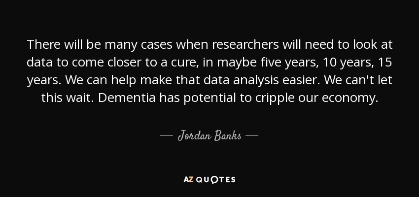 There will be many cases when researchers will need to look at data to come closer to a cure, in maybe five years, 10 years, 15 years. We can help make that data analysis easier. We can't let this wait. Dementia has potential to cripple our economy.