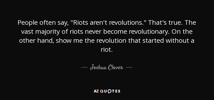 People often say, "Riots aren't revolutions." That's true. The vast majority of riots never become revolutionary. On the other hand, show me the revolution that started without a riot.