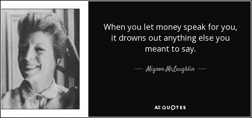 When you let money speak for you, it drowns out anything else you meant to say.