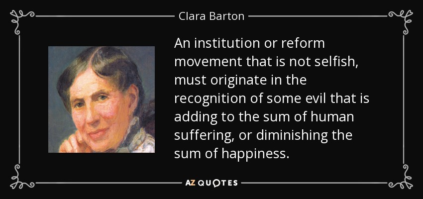 An institution or reform movement that is not selfish, must originate in the recognition of some evil that is adding to the sum of human suffering, or diminishing the sum of happiness.