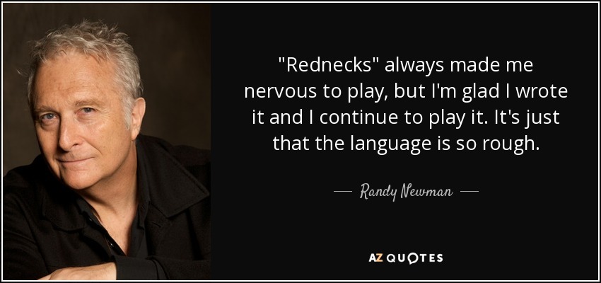 "Rednecks" always made me nervous to play, but I'm glad I wrote it and I continue to play it. It's just that the language is so rough.