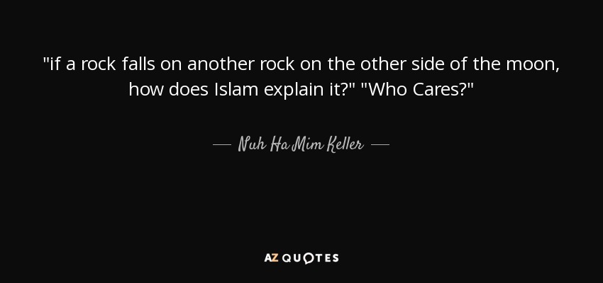 "if a rock falls on another rock on the other side of the moon, how does Islam explain it?" "Who Cares?"