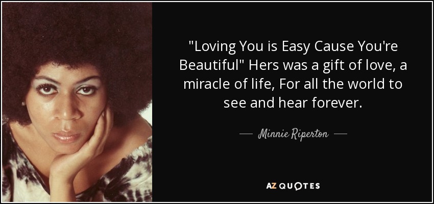 "Loving You is Easy Cause You're Beautiful" Hers was a gift of love, a miracle of life, For all the world to see and hear forever.