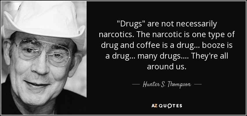 "Drugs" are not necessarily narcotics. The narcotic is one type of drug and coffee is a drug... booze is a drug... many drugs.... They're all around us.
