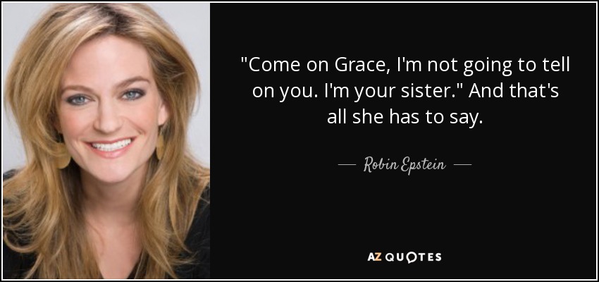 "Come on Grace, I'm not going to tell on you. I'm your sister." And that's all she has to say.