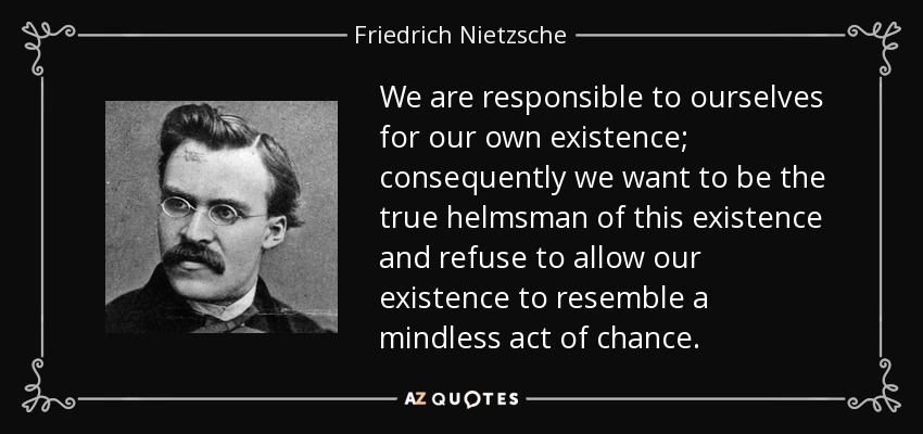 We are responsible to ourselves for our own existence; consequently we want to be the true helmsman of this existence and refuse to allow our existence to resemble a mindless act of chance.