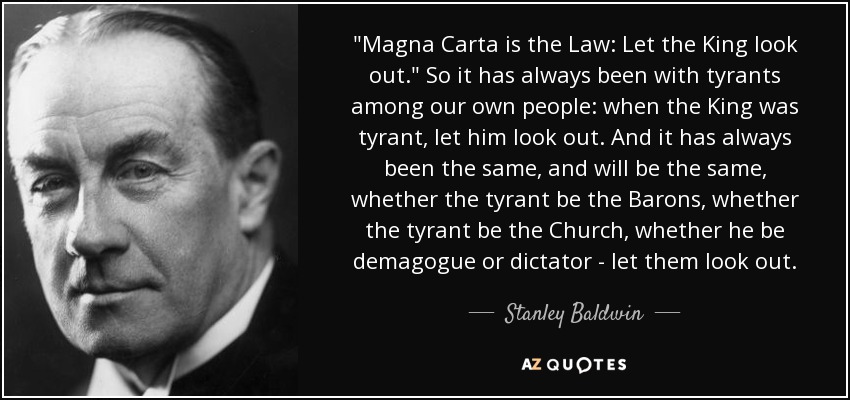"Magna Carta is the Law: Let the King look out." So it has always been with tyrants among our own people: when the King was tyrant, let him look out. And it has always been the same, and will be the same, whether the tyrant be the Barons, whether the tyrant be the Church, whether he be demagogue or dictator - let them look out.