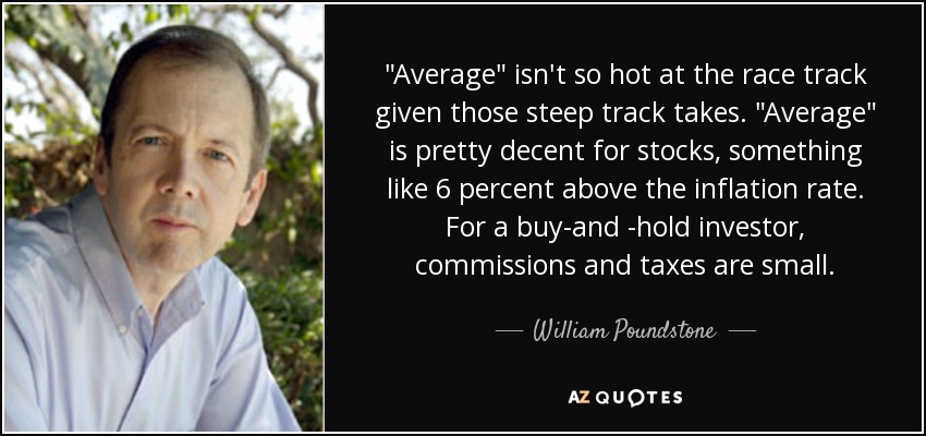 "Average" isn't so hot at the race track given those steep track takes. "Average" is pretty decent for stocks, something like 6 percent above the inflation rate. For a buy-and -hold investor, commissions and taxes are small.