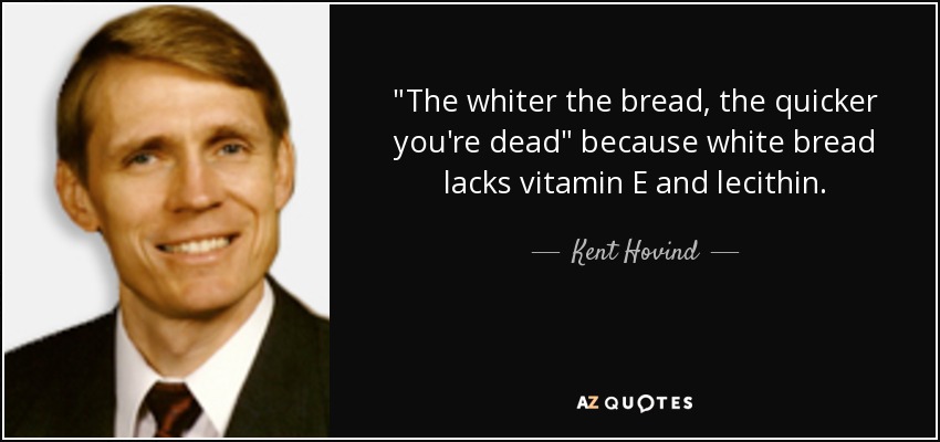 "The whiter the bread, the quicker you're dead" because white bread lacks vitamin E and lecithin.