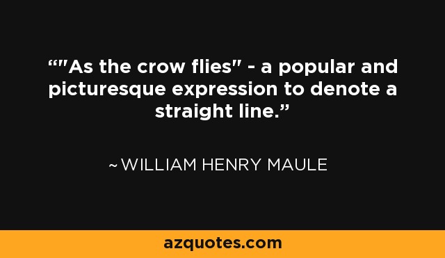 "As the crow flies" - a popular and picturesque expression to denote a straight line.