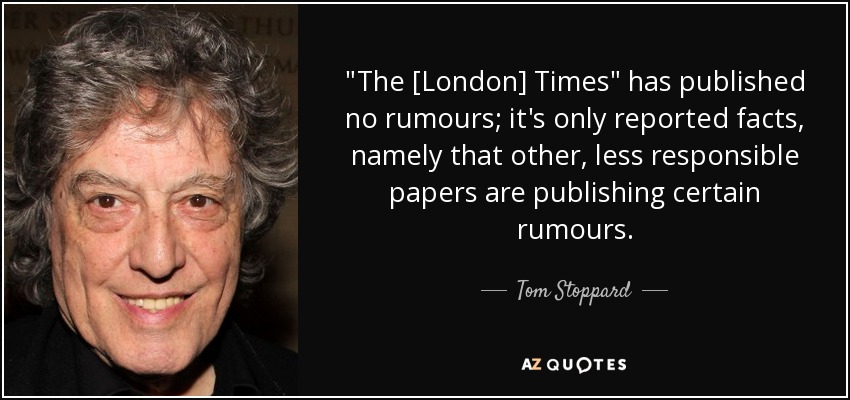 "The [London] Times" has published no rumours; it's only reported facts, namely that other, less responsible papers are publishing certain rumours.