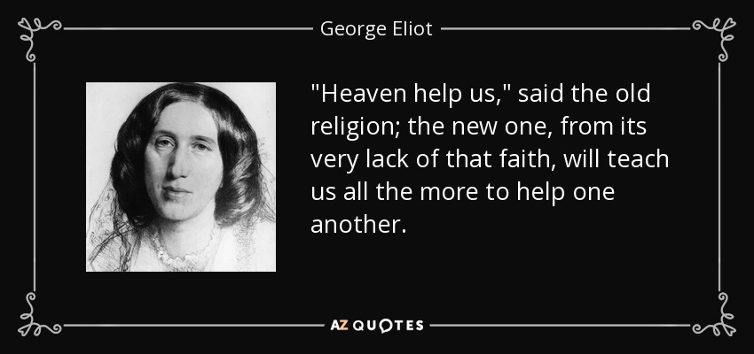 "Heaven help us," said the old religion; the new one, from its very lack of that faith, will teach us all the more to help one another.