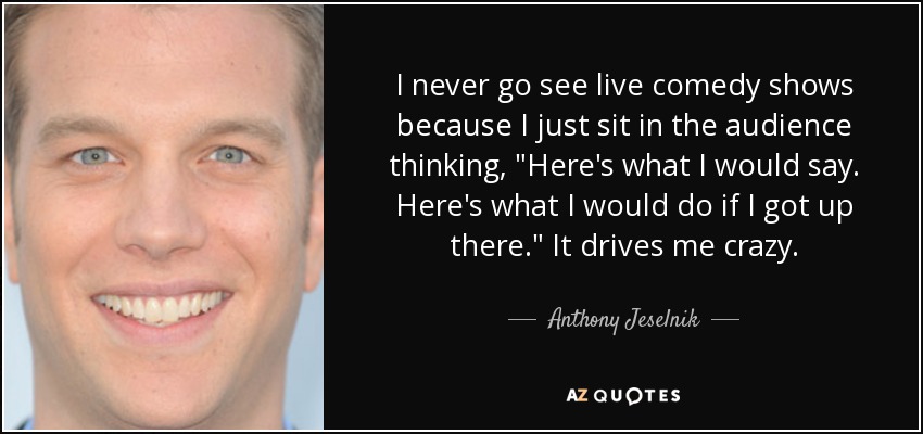 I never go see live comedy shows because I just sit in the audience thinking, "Here's what I would say. Here's what I would do if I got up there." It drives me crazy.