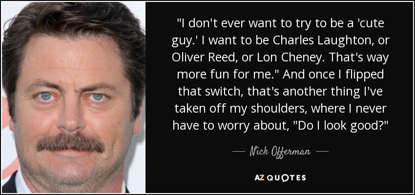 "I don't ever want to try to be a 'cute guy.' I want to be Charles Laughton, or Oliver Reed, or Lon Cheney. That's way more fun for me." And once I flipped that switch, that's another thing I've taken off my shoulders, where I never have to worry about, "Do I look good?"