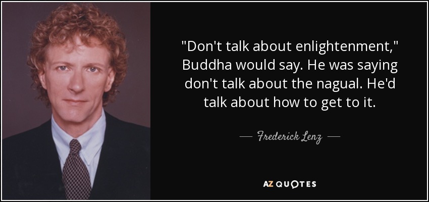 "Don't talk about enlightenment," Buddha would say. He was saying don't talk about the nagual. He'd talk about how to get to it.