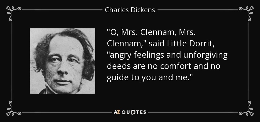 "O, Mrs. Clennam, Mrs. Clennam," said Little Dorrit, "angry feelings and unforgiving deeds are no comfort and no guide to you and me."