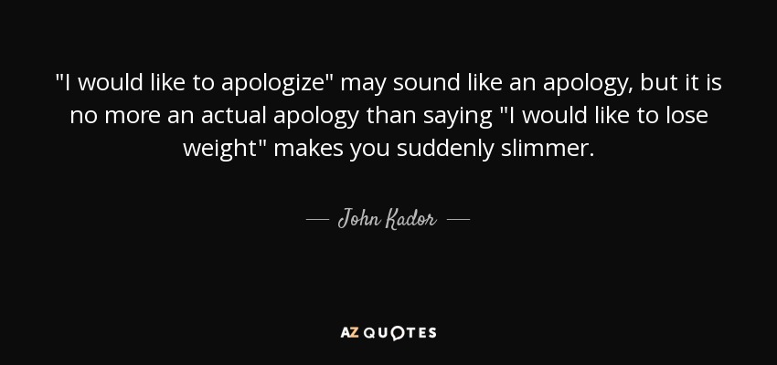 "I would like to apologize" may sound like an apology, but it is no more an actual apology than saying "I would like to lose weight" makes you suddenly slimmer.