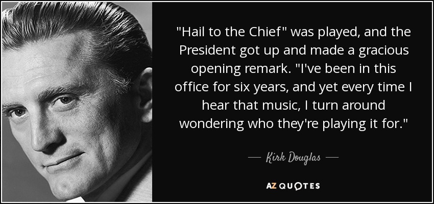 "Hail to the Chief" was played, and the President got up and made a gracious opening remark. "I've been in this office for six years, and yet every time I hear that music, I turn around wondering who they're playing it for."