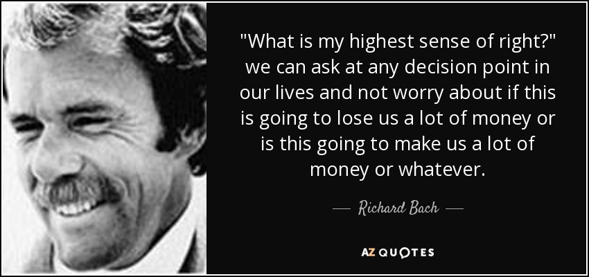 "What is my highest sense of right?" we can ask at any decision point in our lives and not worry about if this is going to lose us a lot of money or is this going to make us a lot of money or whatever.