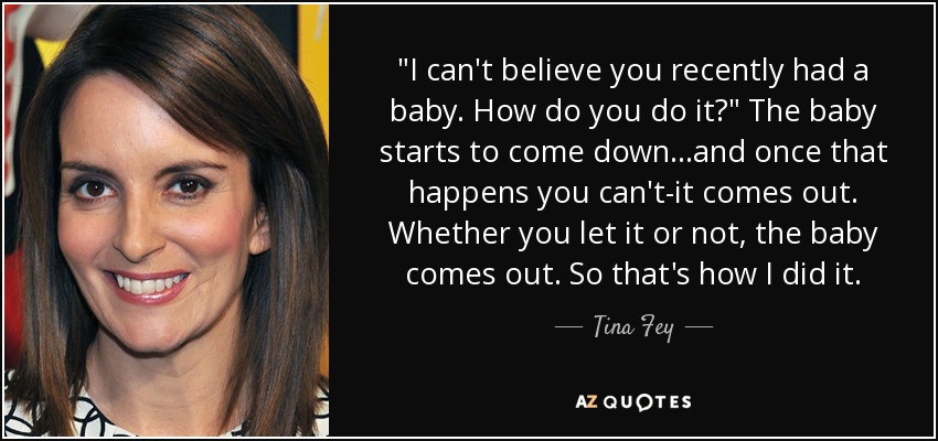 "I can't believe you recently had a baby. How do you do it?" The baby starts to come down...and once that happens you can't-it comes out. Whether you let it or not, the baby comes out. So that's how I did it.