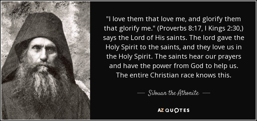 "I love them that love me, and glorify them that glorify me." (Proverbs 8:17, I Kings 2:30,) says the Lord of His saints. The lord gave the Holy Spirit to the saints, and they love us in the Holy Spirit. The saints hear our prayers and have the power from God to help us. The entire Christian race knows this.