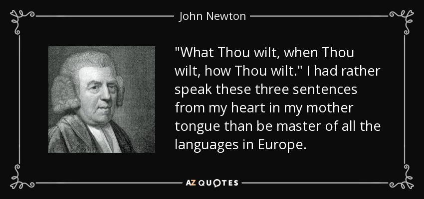 "What Thou wilt, when Thou wilt, how Thou wilt." I had rather speak these three sentences from my heart in my mother tongue than be master of all the languages in Europe.