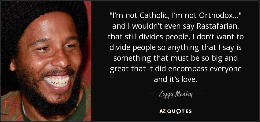 "I’m not Catholic, I’m not Orthodox…" and I wouldn’t even say Rastafarian, that still divides people, I don’t want to divide people so anything that I say is something that must be so big and great that it did encompass everyone and it’s love.
