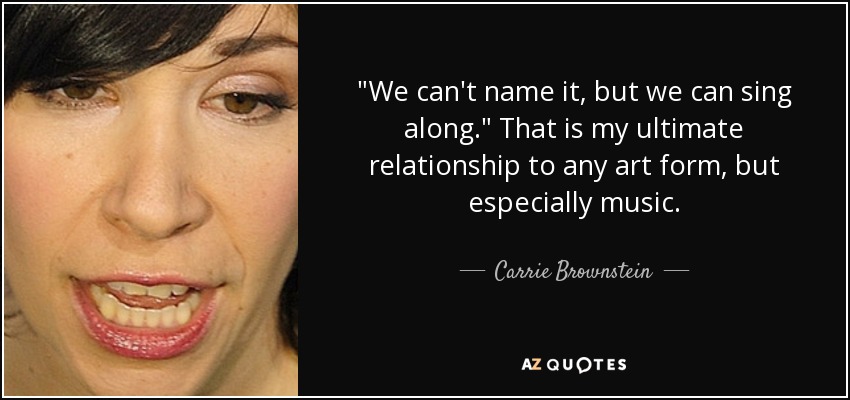 "We can't name it, but we can sing along." That is my ultimate relationship to any art form, but especially music.