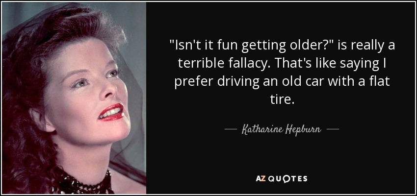 "Isn't it fun getting older?" is really a terrible fallacy. That's like saying I prefer driving an old car with a flat tire.