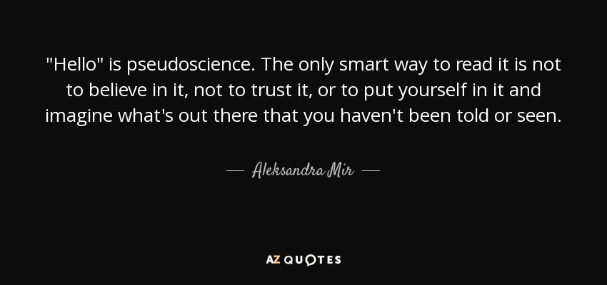 "Hello" is pseudoscience. The only smart way to read it is not to believe in it, not to trust it, or to put yourself in it and imagine what's out there that you haven't been told or seen.
