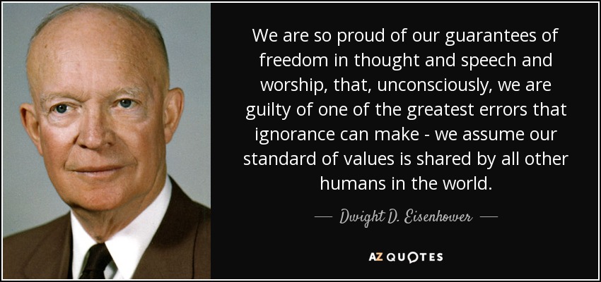 We are so proud of our guarantees of freedom in thought and speech and worship, that, unconsciously, we are guilty of one of the greatest errors that ignorance can make - we assume our standard of values is shared by all other humans in the world.