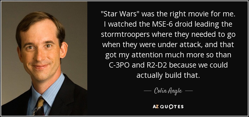 "Star Wars" was the right movie for me. I watched the MSE-6 droid leading the stormtroopers where they needed to go when they were under attack, and that got my attention much more so than C-3PO and R2-D2 because we could actually build that.