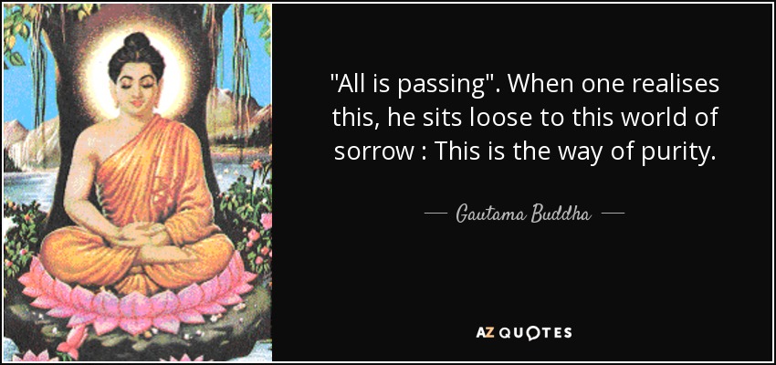 "All is passing". When one realises this, he sits loose to this world of sorrow : This is the way of purity.