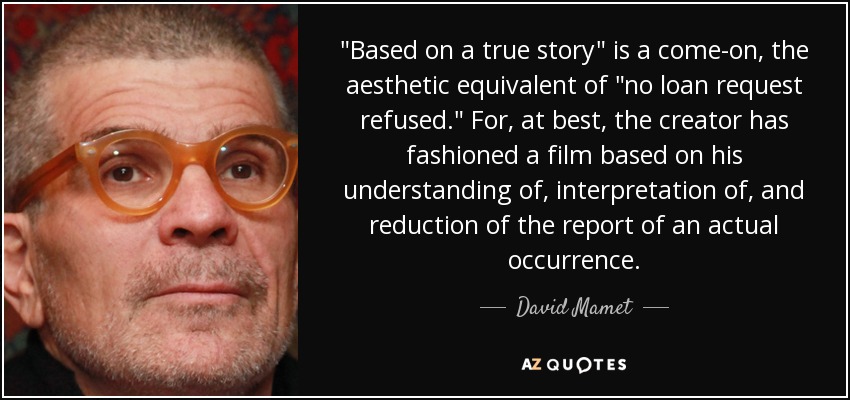 "Based on a true story" is a come-on, the aesthetic equivalent of "no loan request refused." For, at best, the creator has fashioned a film based on his understanding of, interpretation of, and reduction of the report of an actual occurrence.