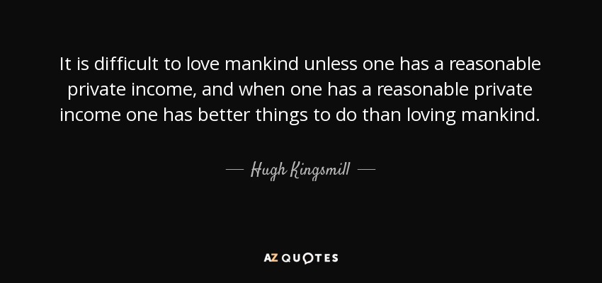 It is difficult to love mankind unless one has a reasonable private income, and when one has a reasonable private income one has better things to do than loving mankind.