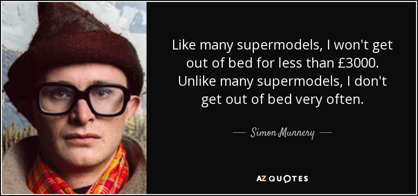 Like many supermodels, I won't get out of bed for less than £3000. Unlike many supermodels, I don't get out of bed very often.