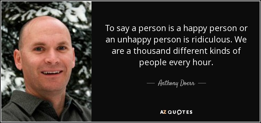 To say a person is a happy person or an unhappy person is ridiculous. We are a thousand different kinds of people every hour.