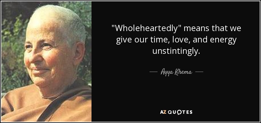 "Wholeheartedly" means that we give our time, love, and energy unstintingly.