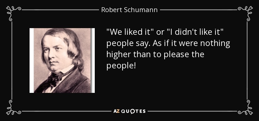 "We liked it" or "I didn't like it" people say. As if it were nothing higher than to please the people!