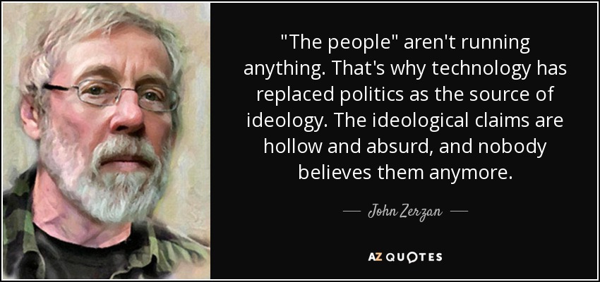 "The people" aren't running anything. That's why technology has replaced politics as the source of ideology. The ideological claims are hollow and absurd, and nobody believes them anymore.