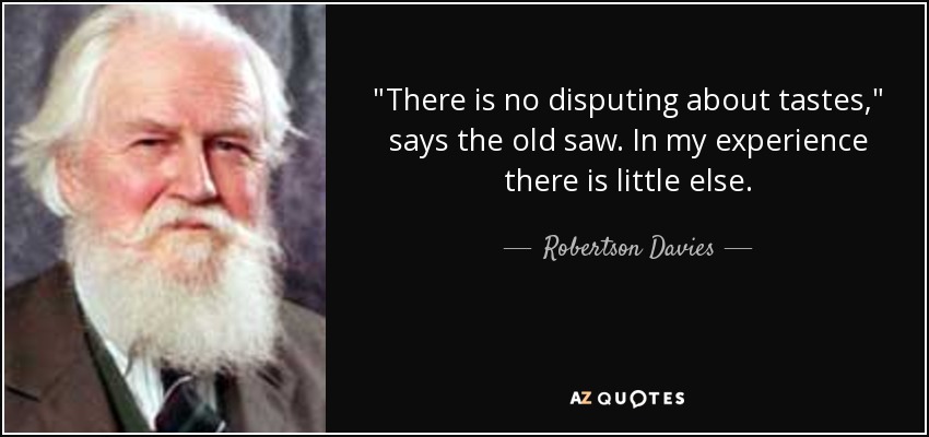 "There is no disputing about tastes," says the old saw. In my experience there is little else.