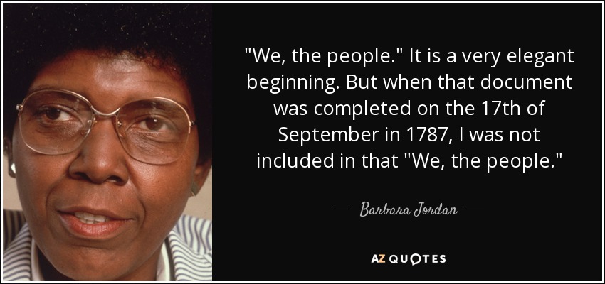 "We, the people." It is a very elegant beginning. But when that document was completed on the 17th of September in 1787, I was not included in that "We, the people."