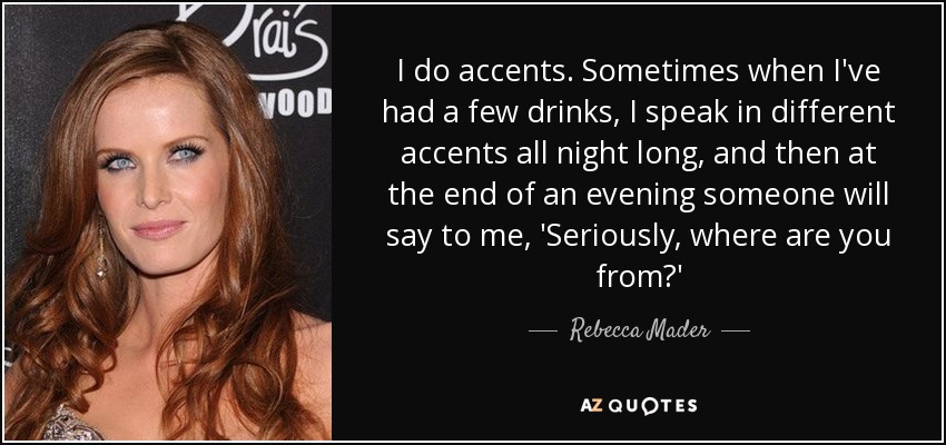 I do accents. Sometimes when I've had a few drinks, I speak in different accents all night long, and then at the end of an evening someone will say to me, 'Seriously, where are you from?'