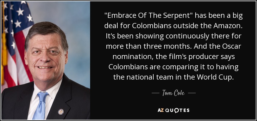 "Embrace Of The Serpent" has been a big deal for Colombians outside the Amazon. It's been showing continuously there for more than three months. And the Oscar nomination, the film's producer says Colombians are comparing it to having the national team in the World Cup.