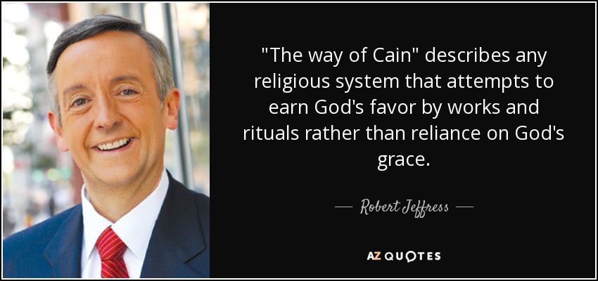 "The way of Cain" describes any religious system that attempts to earn God's favor by works and rituals rather than reliance on God's grace.