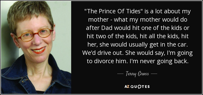 "The Prince Of Tides" is a lot about my mother - what my mother would do after Dad would hit one of the kids or hit two of the kids, hit all the kids, hit her, she would usually get in the car. We'd drive out. She would say, I'm going to divorce him. I'm never going back.