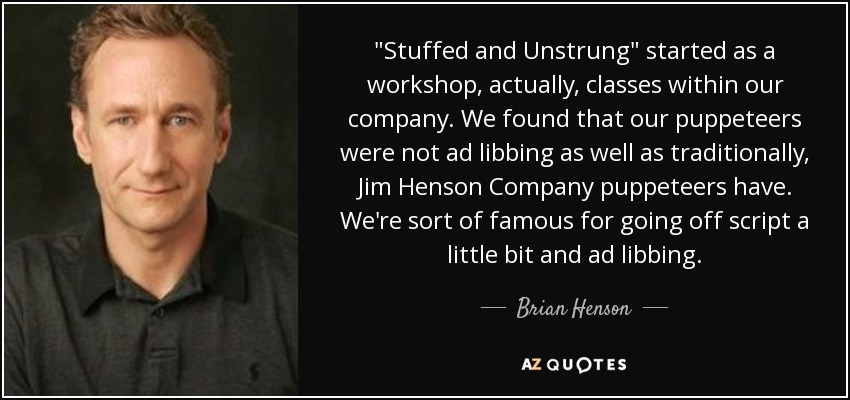 "Stuffed and Unstrung" started as a workshop, actually, classes within our company. We found that our puppeteers were not ad libbing as well as traditionally, Jim Henson Company puppeteers have. We're sort of famous for going off script a little bit and ad libbing.