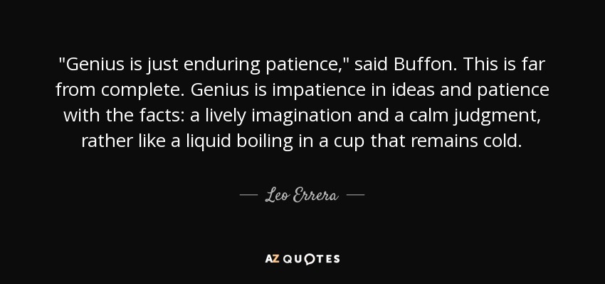 "Genius is just enduring patience," said Buffon. This is far from complete. Genius is impatience in ideas and patience with the facts: a lively imagination and a calm judgment, rather like a liquid boiling in a cup that remains cold.