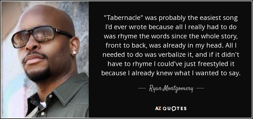 "Tabernacle" was probably the easiest song I'd ever wrote because all I really had to do was rhyme the words since the whole story, front to back, was already in my head. All I needed to do was verbalize it, and if it didn't have to rhyme I could've just freestyled it because I already knew what I wanted to say.